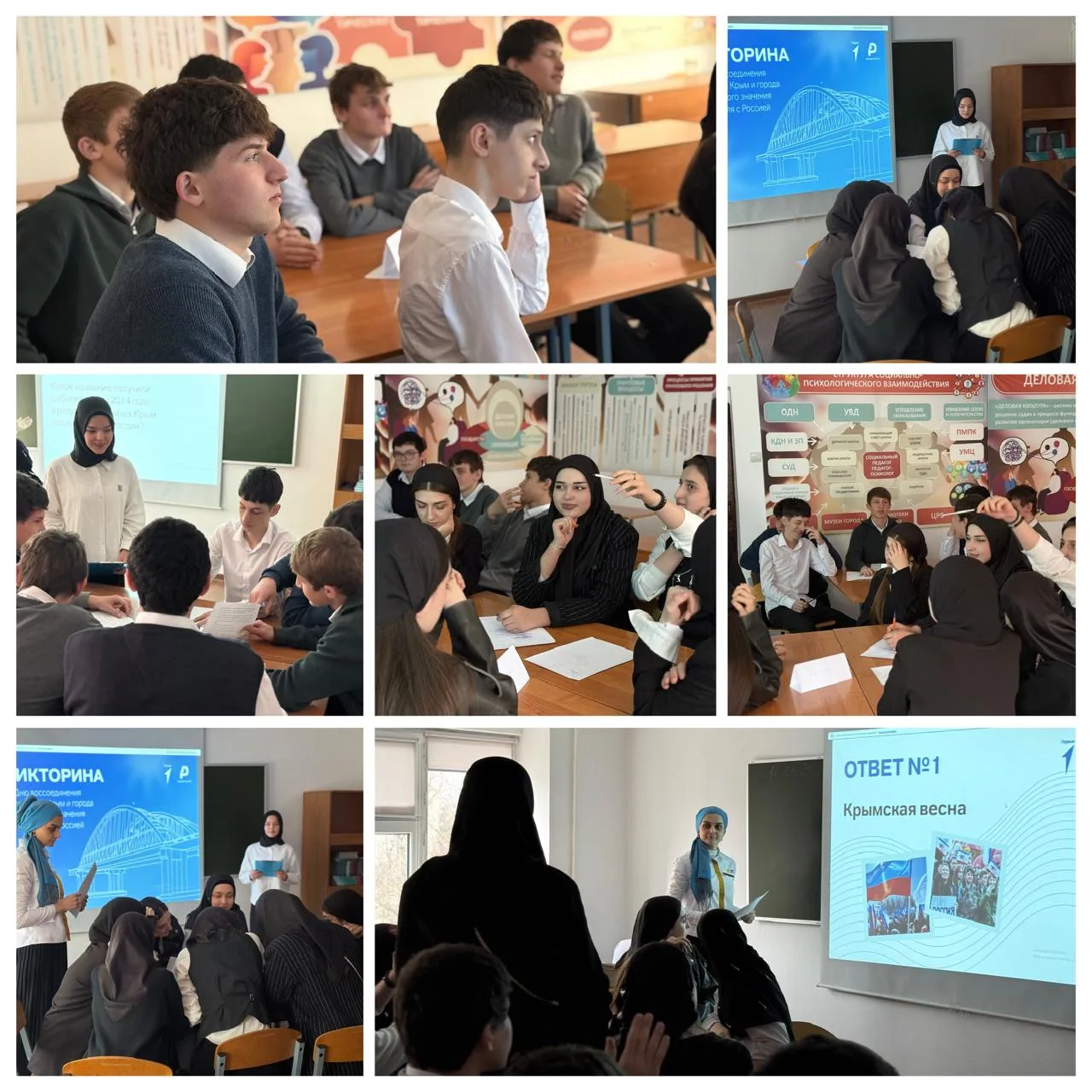 В ГБПОУ ГГКИТ советник директора провела для студентов познавательную викторину, посвящённую этому событию. Участники смогли проверить свои знания об истории Крыма, ключевых событиях и значении этого дня
