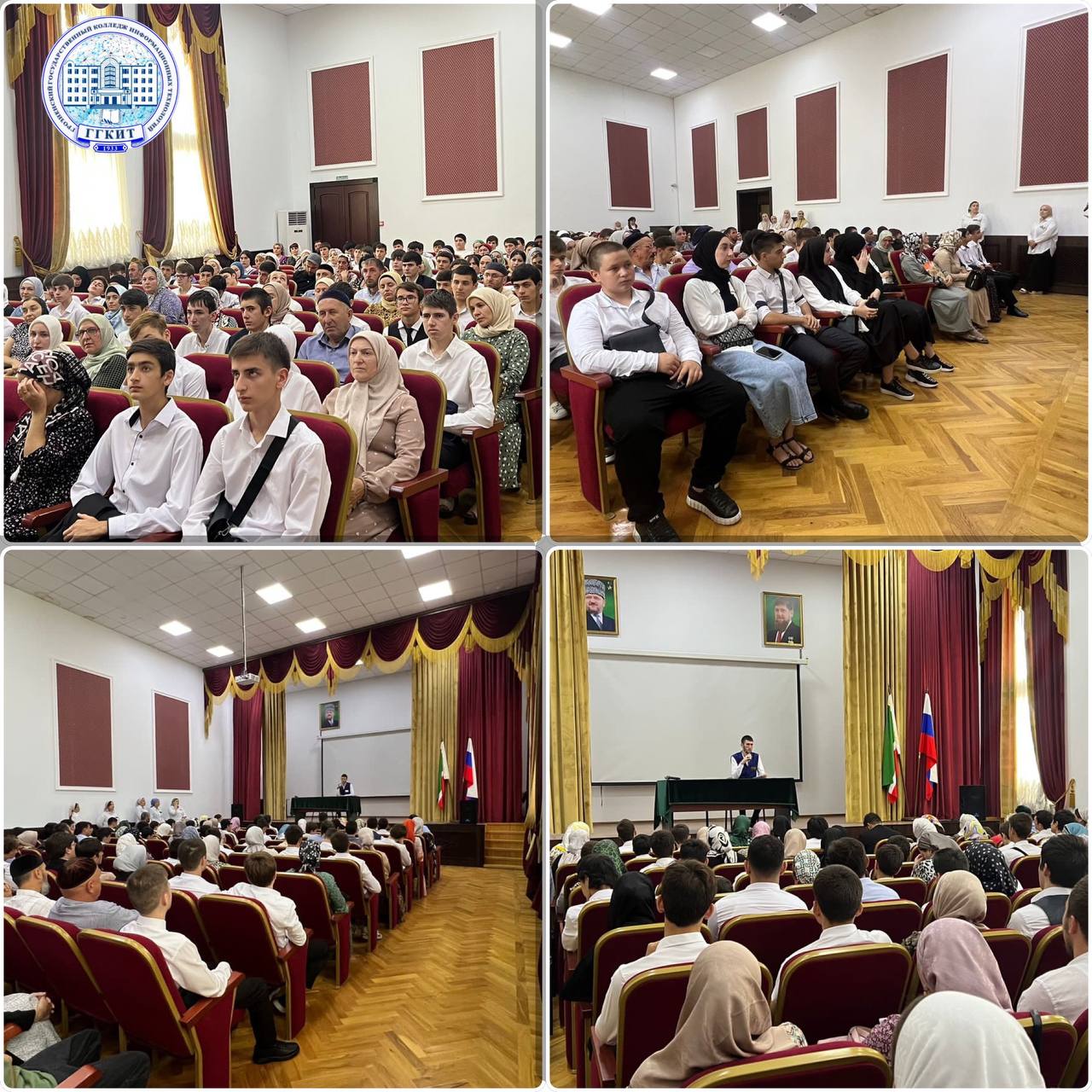 В актовом зале собрались студенты нового набора и их родители. Новых студентов и их родителей в стенах колледжа приветствовали члены преподавательского состава во главе с директором колледжа Хож-Ахмедом Буаровичом. Директор колледжа поздравил первокурсников с началом нового учебного года и пожелал им стараний и усердия в учебе, необходимых для достижения высоких результатов в освоении выбранных направлений.