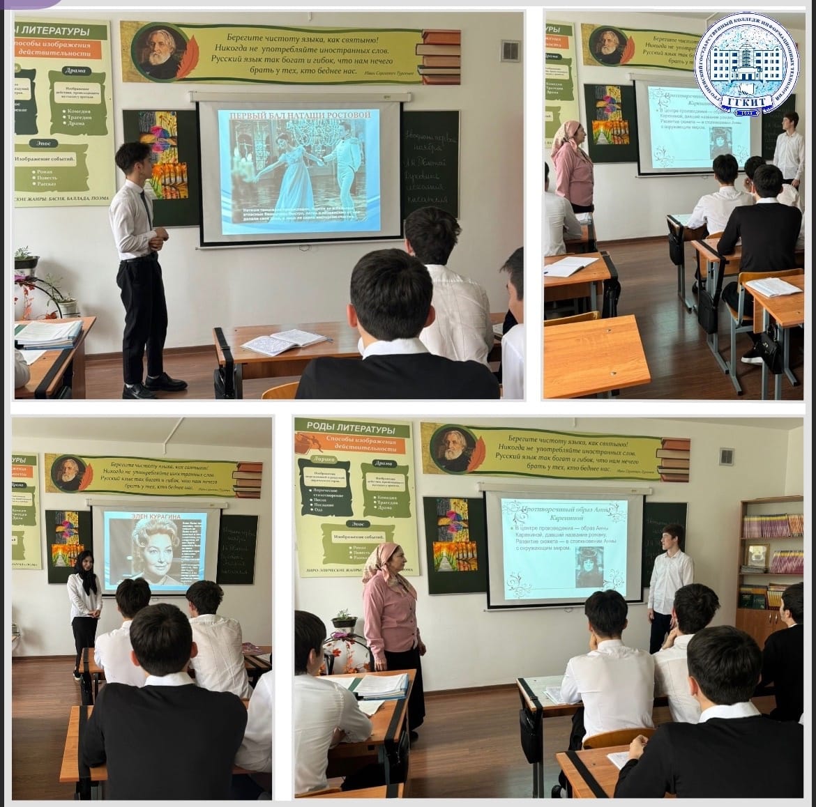 В рамках празднования Дня матери преподаватель русской литературы Техиева З. Ш. провела открытый урок на тему: «Галерея женских образов в романе Л.Н. Толстого «Война и мир»».
