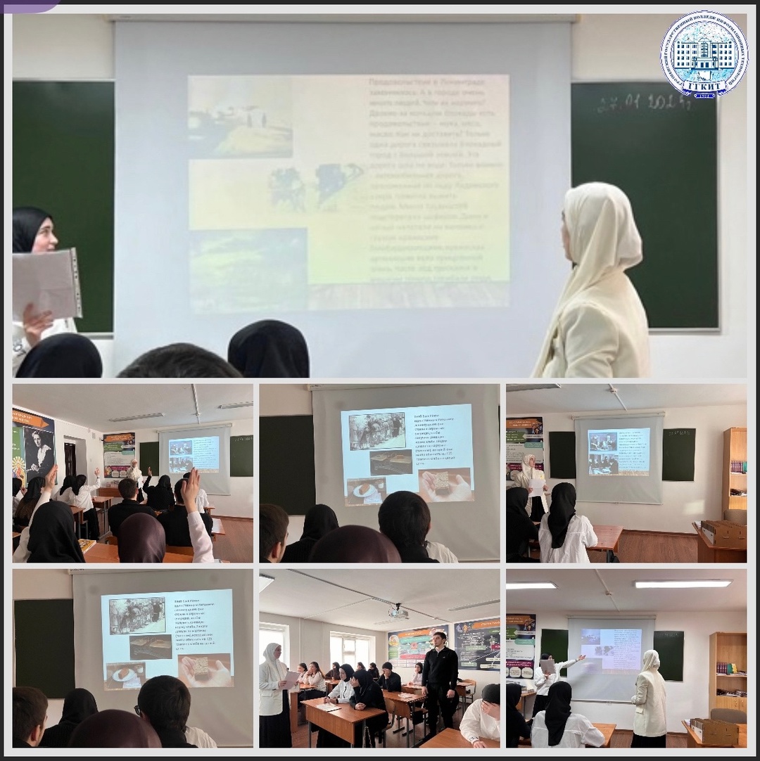 27 января 2025 года ГБПОУ «Грозненский государственный колледж информационных технологий» провел информационно-тематический урок, посвященный Дню полного освобождения Ленинграда от фашистской блокады в 1944 году. Тема мероприятия «Солдат войны не выбирает» была выбрана не случайно, она отражает всю сложность и трагизм военных событий, прошедших через судьбы миллионов людей. На уроке были представлены архивные документы, воспоминания очевидцев и видеофрагменты, которые помогли воссоздать тяжелую реальность блокады. Преподаватель подчеркнул героизм и стойкость жителей Ленинграда, их беспримерную преданность родине в самые жестокие времена. Проведение подобного мероприятия стало важным шагом в воспитании патриотизма у молодежи, напоминанием о том, как значима память о войне и о тех, кто защищал свободу своего народа.