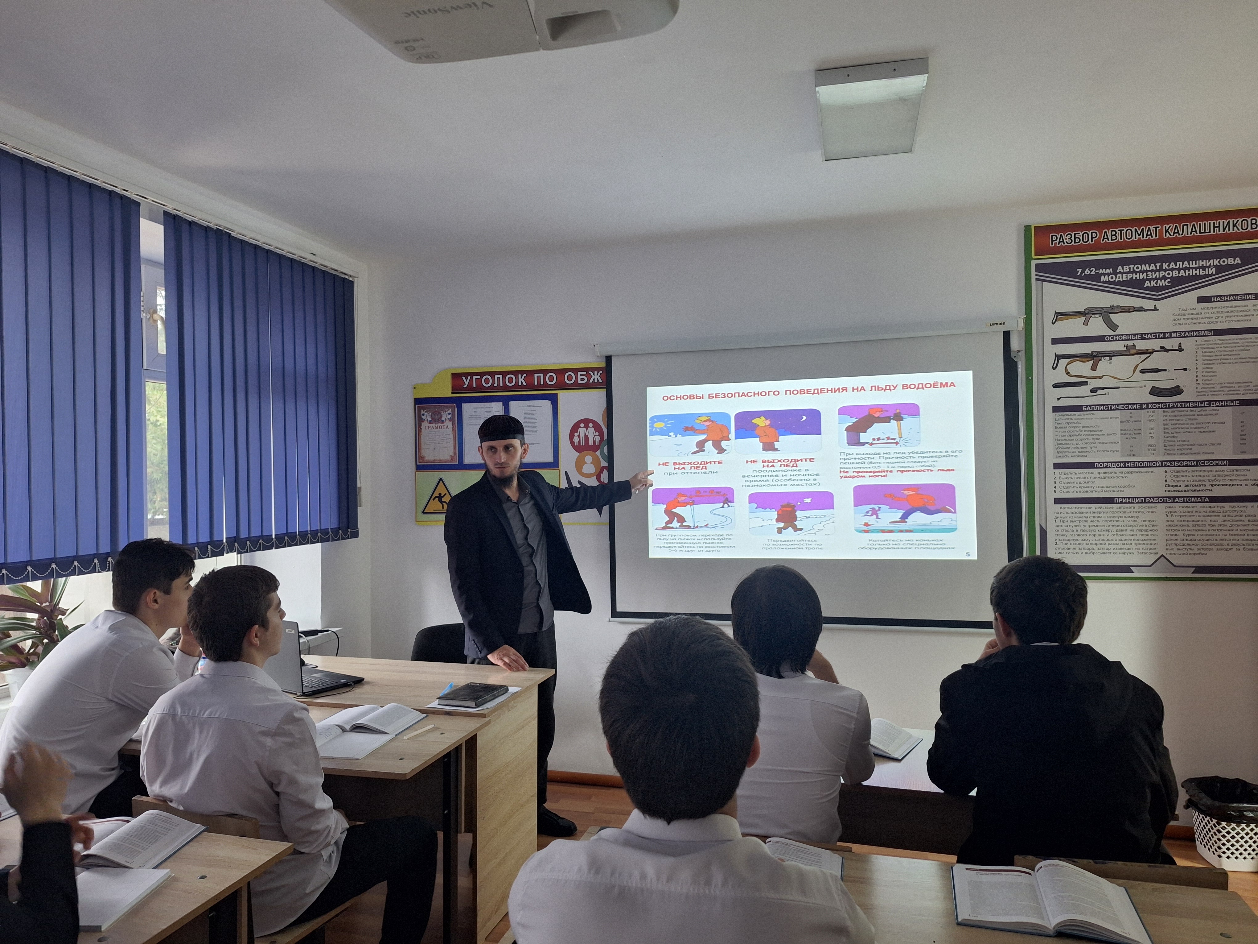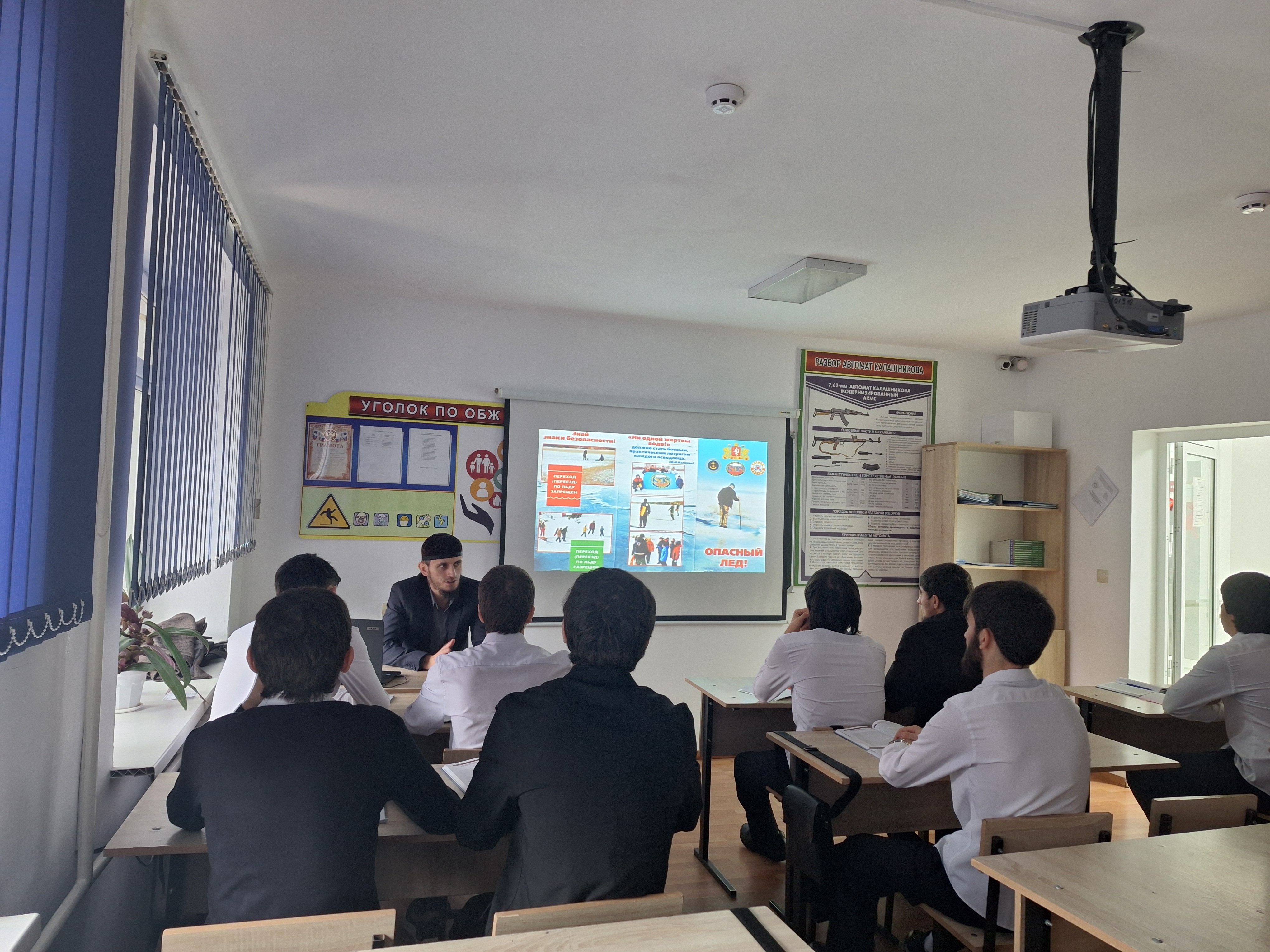 Во исполнение п. 2 раздела 2 Плана мероприятий по обеспечению безопасности и охране жизни людей в осенне-зимний период 2025/2026 годов на водных объектах Чеченской Республики, 11 декабря в ГБПОУ «КГК им. Ш. Калиева» на уроке ОБЗР была проведена беседа на тему «Правила безопасности на водных объектах в зимний период».