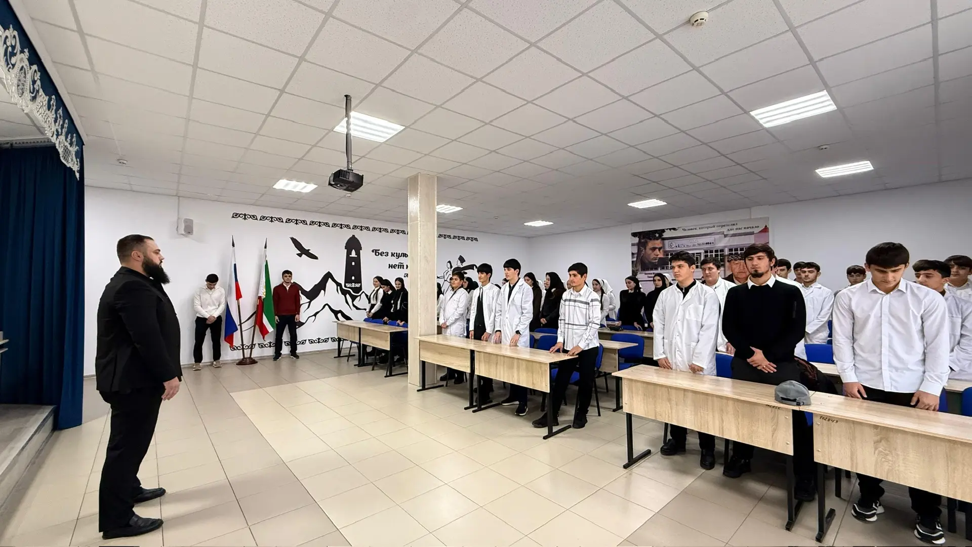 Сегодня в ГБПОУ «КГК им. Ш. Калиева» прошла еженедельная линейка, которая началась с выноса государственного флага Российской Федерации и Чеченской Республики под исполнения Гимнов РФ и ЧР.