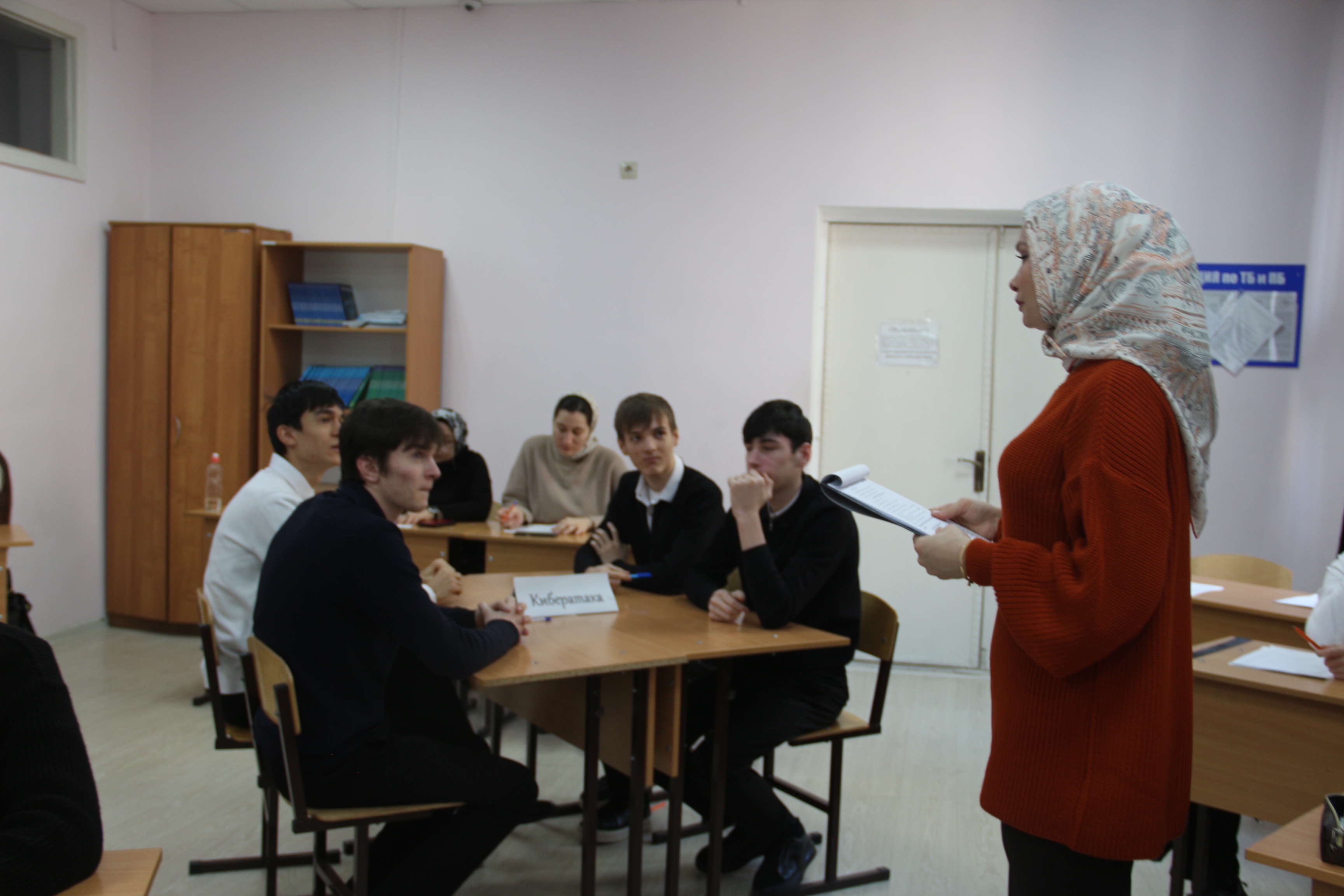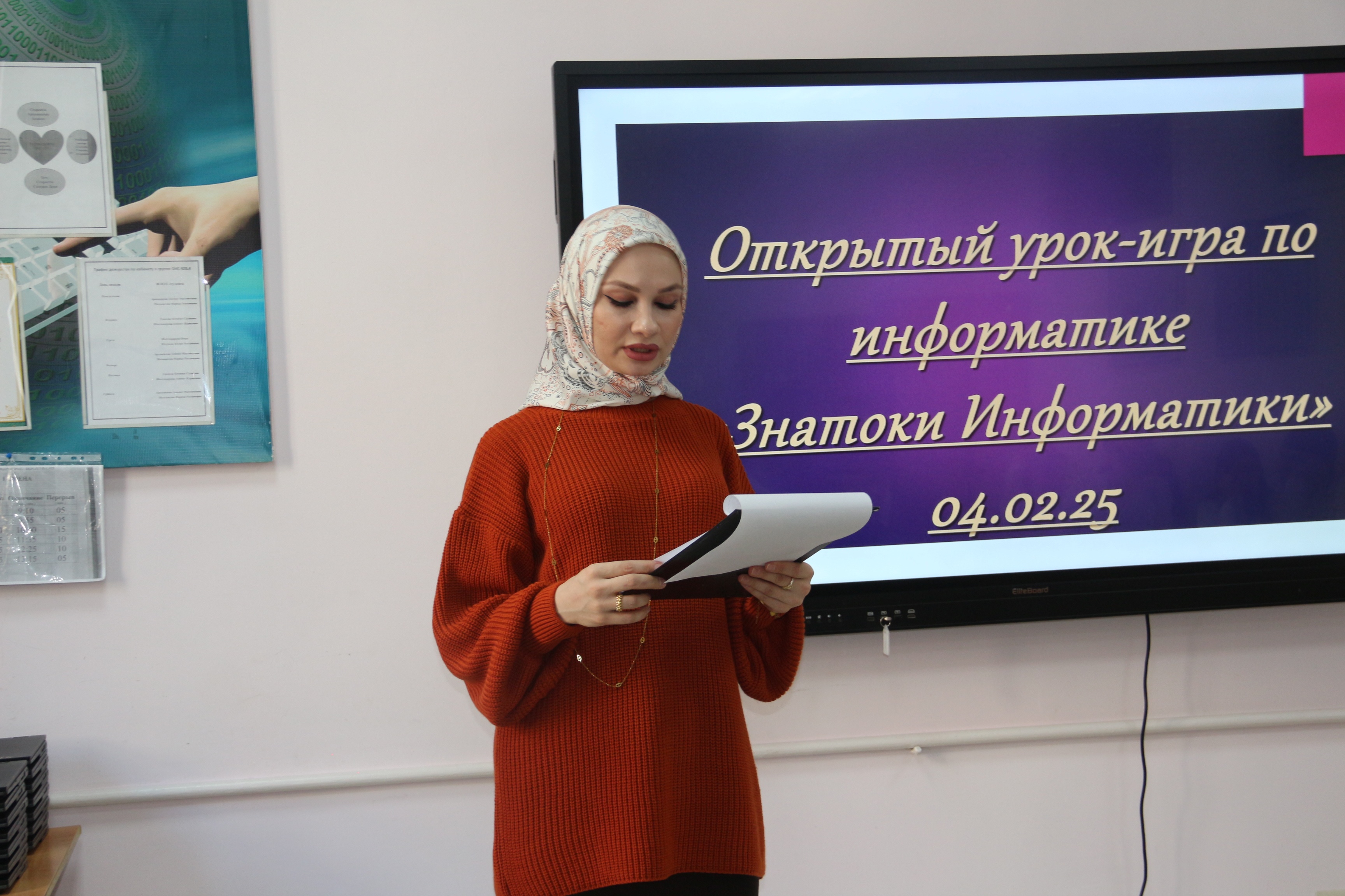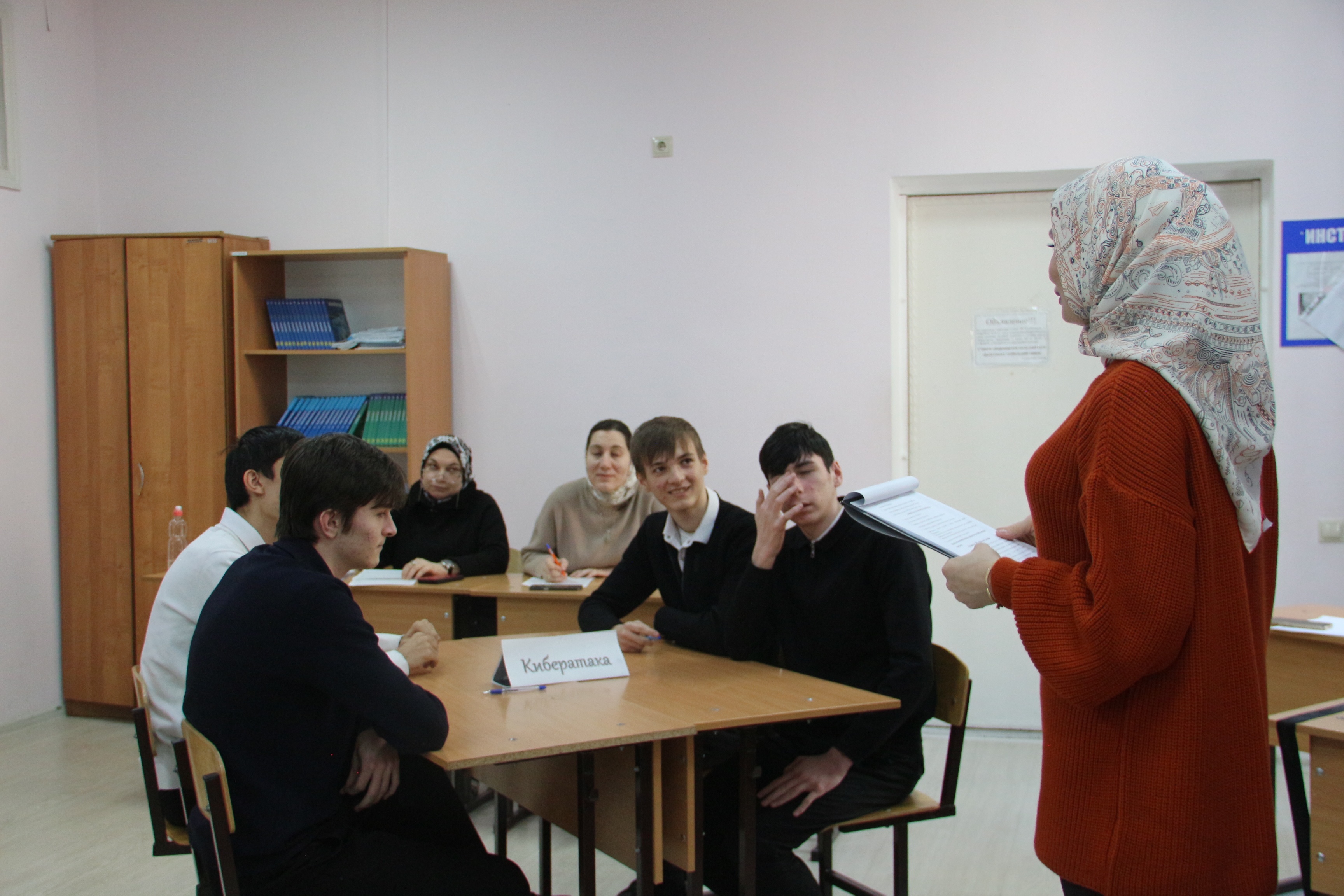 5 февраля Дадаева А.С. провела урок-игру «Знатоки информатики». Игра состояла из 8 конкурсов которые включали различные разделы информатики, в виде вопросов, ребусов, кроссвордов и филвордов. Последним стал конкурс «черный ящик». В игре приняли участие две команды студентов «Кибератака» и «МММХ». По итогам всех состязаний победила команда «Кибератака».