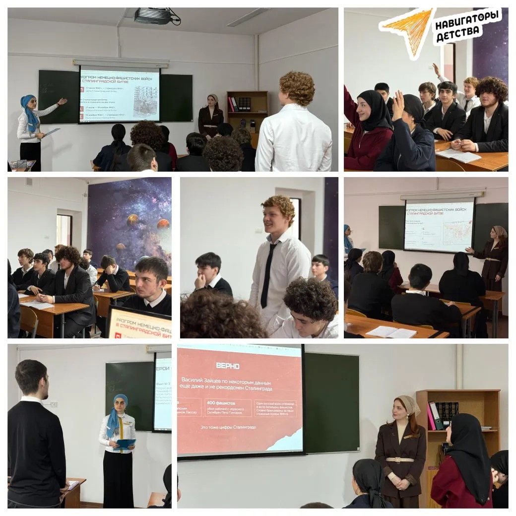 2 февраля — День воинской славы России. В этот день мы вспоминаем одно из самых значимых событий Великой Отечественной войны — победу в Сталинградской битве, ставшей переломным моментом на пути к Великой Победе. В ГБПОУ «ГГКИТ» советник директора Актемирова А. С.-А. и преподаватель Муцаева Л. провели открытый урок, посвящённый этой памятной дате. В ходе занятия обучающиеся познакомились с ключевыми событиями Сталинградской битвы, узнали о мужестве и героизме защитников Отечества, а также о значении этой победы для истории нашей страны. Подобные мероприятия способствуют сохранению исторической памяти и воспитанию патриотизма у молодого поколения. #НавигаторыСПО #Росдетцентр #оСталинградеНД